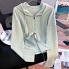 Gray Hooded Sweatshirt for Women Updated Autumn and Winter Thin Versatile Jacket Double Zipper Slim Fit Slim Pullover Top
