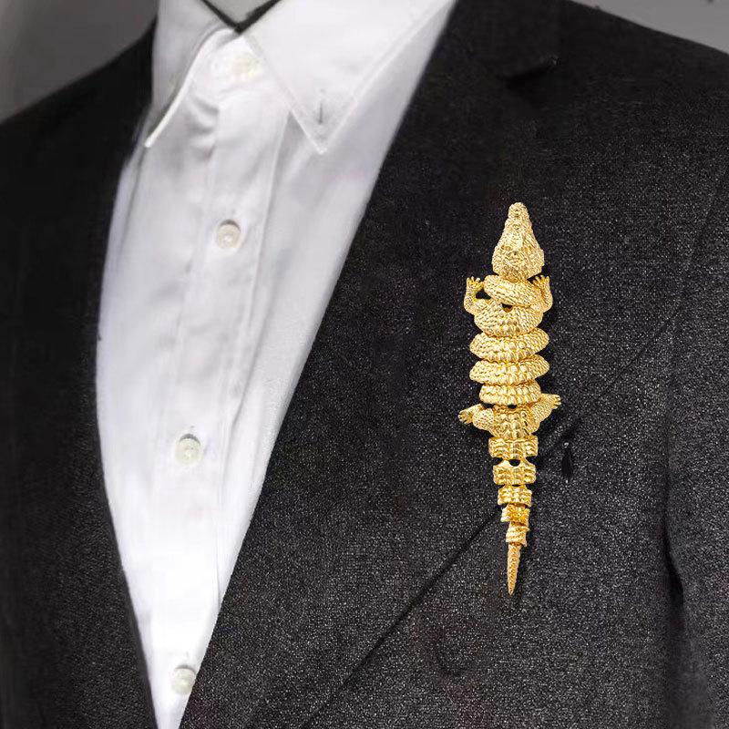 Vintage Alligator Brooch Joint Movable Alloy Animal Electroplated Large Alligator Brooch Men's Clothing Accessories