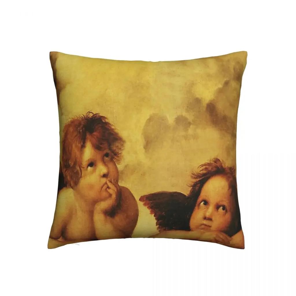 Angels Cherubs Raphael Santi Sistine Madonna Sweet Polyester Cushion Cover Home Office Decorative Kawaii Pillow Cover
