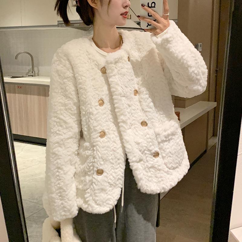 Soft and Waxy Little Fragrant Lambswool Coat for Women Autumn and Winter Short Thickened Plush Temperament Top
