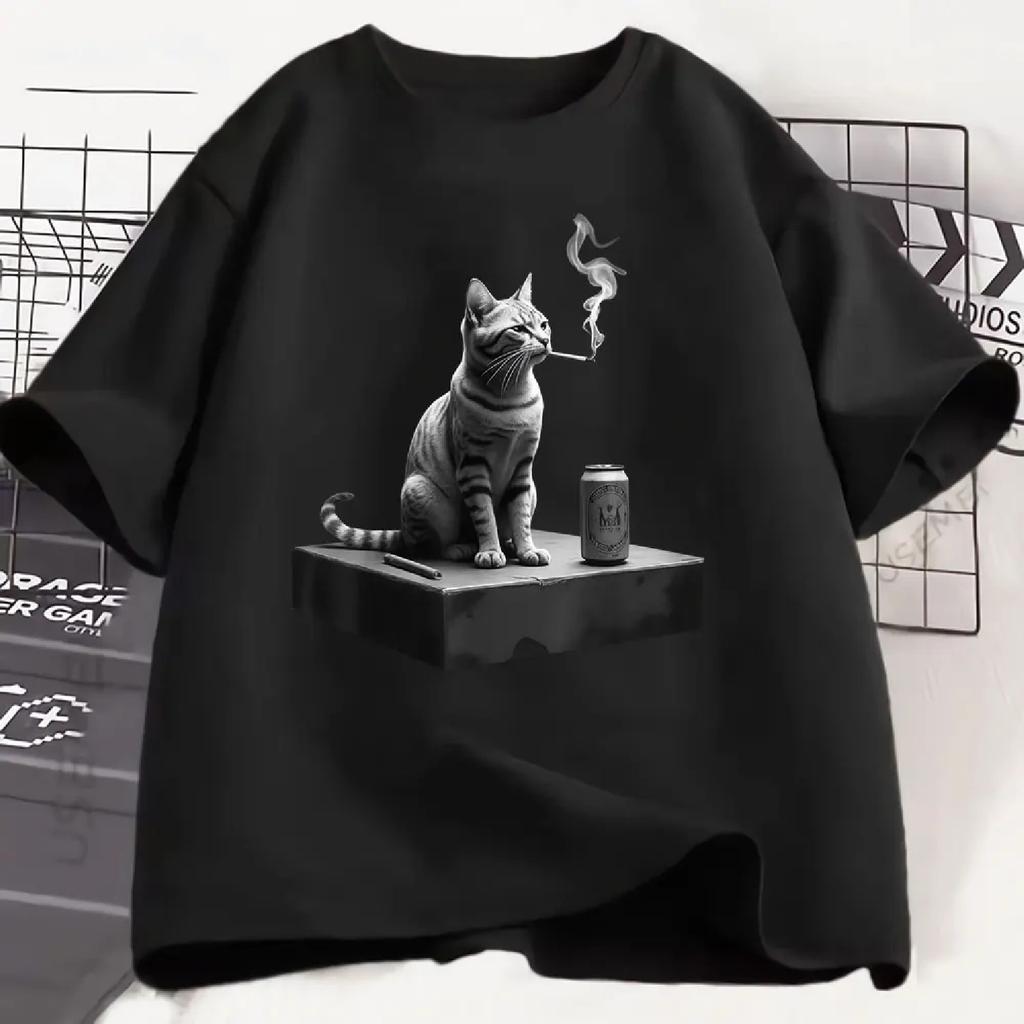 Hipster Men's Women Love Cat Street T-shirt Funny Smoking Cat Meme T Shirt Aesthetic Hip Hop Retro Tee Casual Tshirts Streetwear