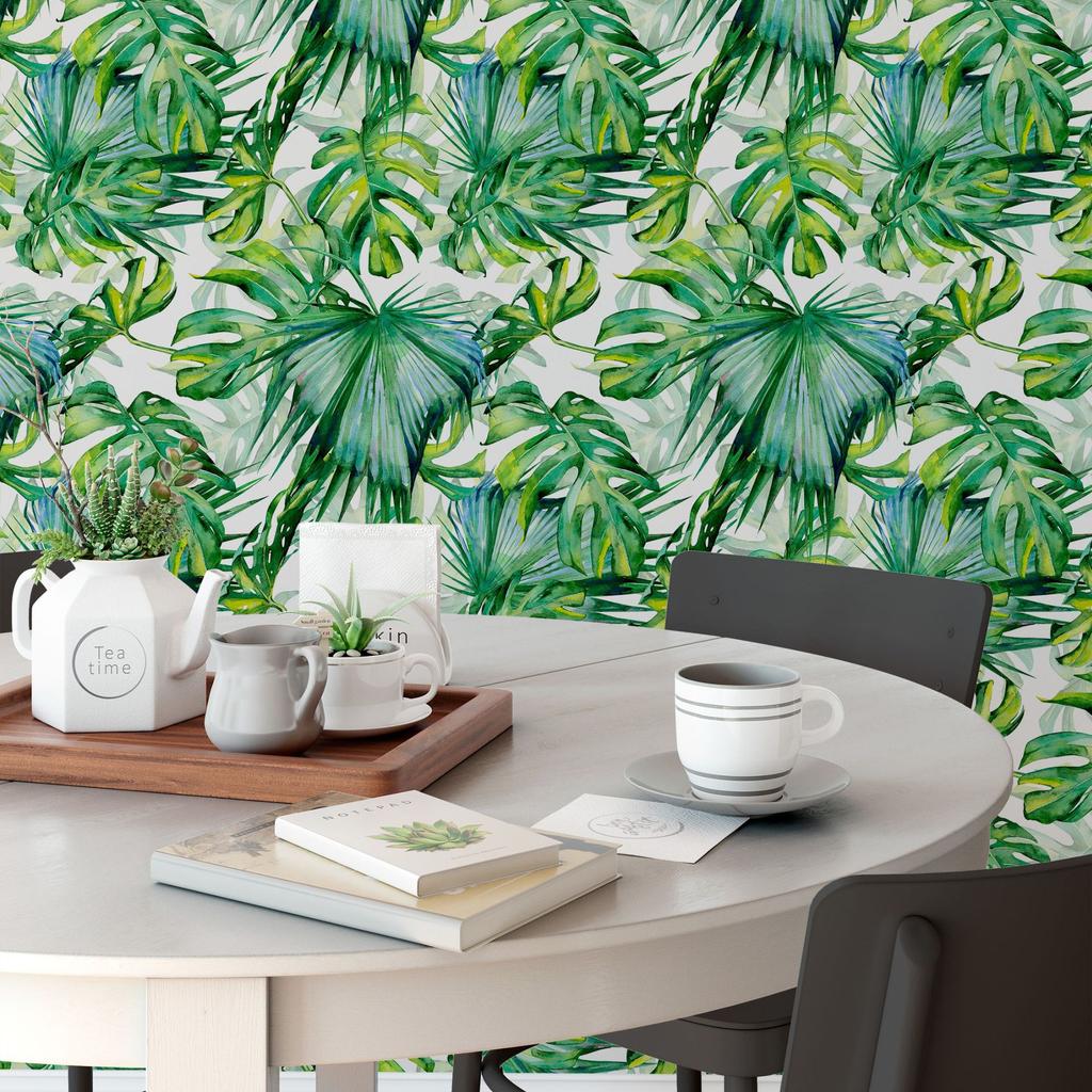 Watercolor Tropical Palm Wall Panels - Seamless Self-Adhesive Wallpaper, Glue-Free Peel & Stick for Living Room Bedroom Home