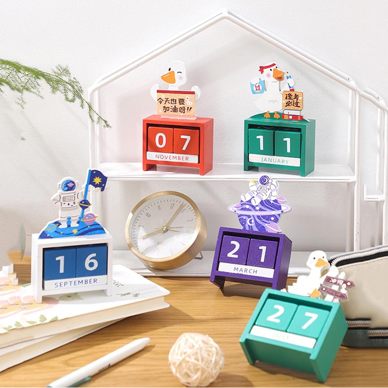 Creative Wooden Perpetual Calendar Desk Block Calendar Month Date Display with GIft Box Home and Office Decor Accessory