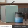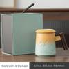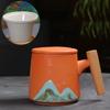 Handcrafted Ceramic Tea Mug with Infuser and Lid – 400ml Heat-Resistant Cup with Wooden Handle, Artistic Mountain Design