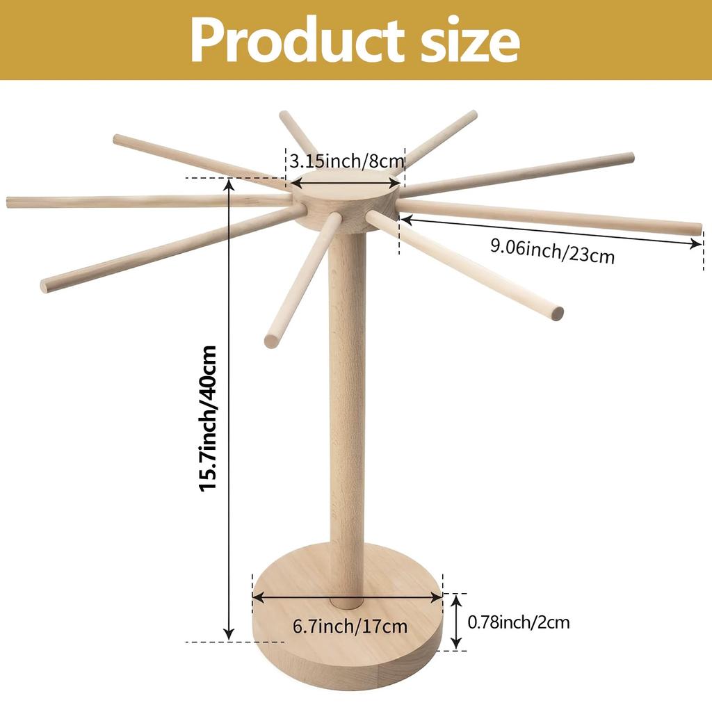 Wooden Pasta Drying Rack with 9 Bar Arms, Detachable Noodle Drying Stand for Kitchen, Portable Spaghetti Hanger