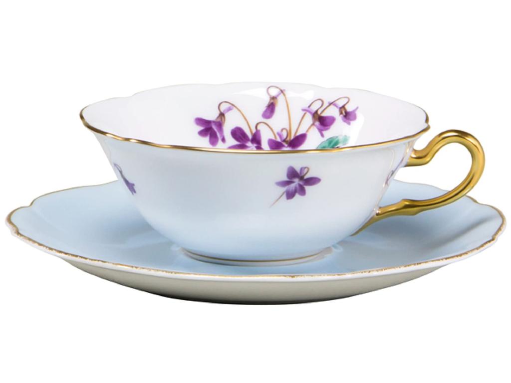 Hanasumire Series...A diverse variety of violets is native to Japan, making it known as one of the world's leading violet kingdoms. Many enthusiasts, including numerous clubs and research groups, are also present. We commissioned the Japan Violet Research Society, established in 1973, to select and supervise the flower species used to create this charming cup and saucer. The teacup, with its flared rim resembling a blooming flower, can also be enjoyed as a sorbet cup. The saucer is also printed with the series name and the name of the flower. The "Variegated Genji Violet" (Furigenji Violet) is said to have been named after Murasaki Shikibu, who was inspired by the purple underside of its leaves. This delicate violet has deep blue-purple flowers.