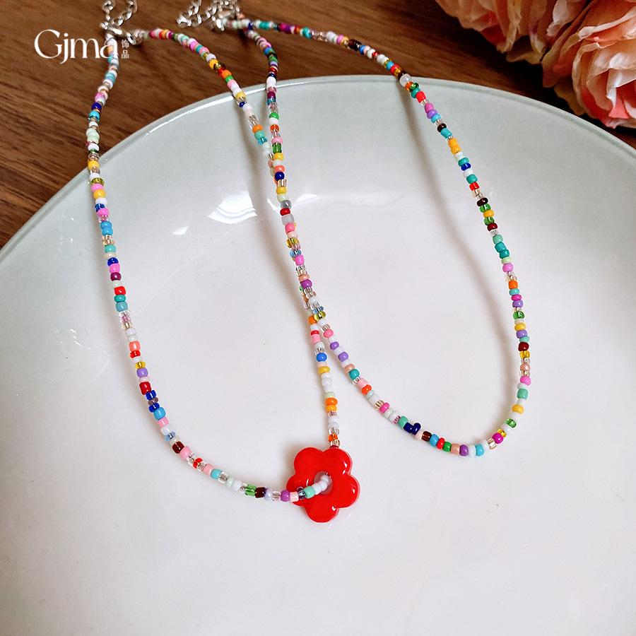 Dopamine stained glass flower necklace collarbone chain fresh necklace design sense niche
