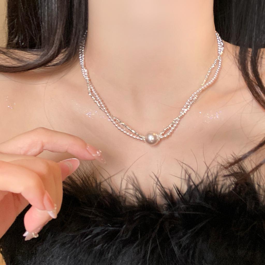French retro round double-layer pearl necklace niche design sense collarbone chain jewelry women's necklace