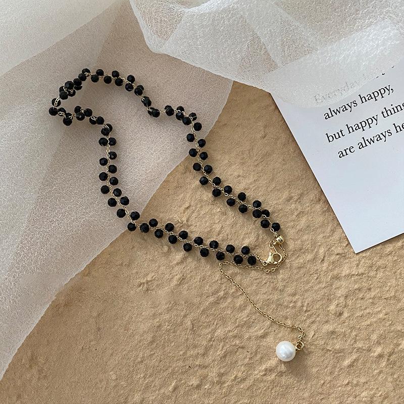 Black crystal pearl necklace female summer niche design necklace Internet celebrity temperament collarbone chain necklace