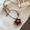 Retro style coffee fabric acrylic love necklace light luxury sweater chain versatile necklace women