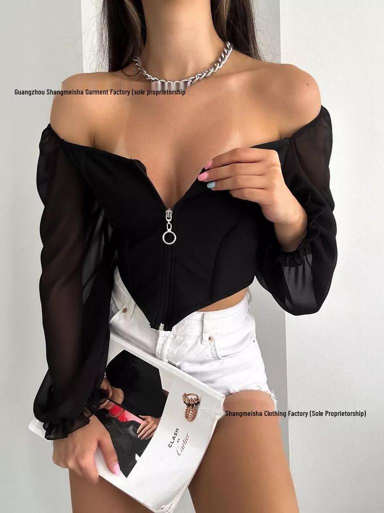 Introducing a chic and stylish blouse that merges European and American fashion influences. This V-neck chiffon blouse features elegant lantern sleeves, providing a timeless look suitable for various occasions. Constructed from a comfortable cotton blend material, it offers a soft and breathable experience while maintaining a sophisticated appearance. The blouse's solid pattern and long sleeves enhance its versatility, making it a perfect addition to any wardrobe. Ideal for those who appreciate a blend of classic and contemporary styles, this blouse is a must-have for fashion-forward individuals.