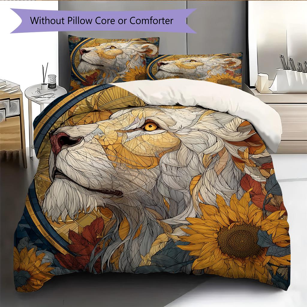 Lion Head Pattern Bedding Quilt Set Home Decoration Gift (1 * duvet cover + 2 * pillowcase without core)