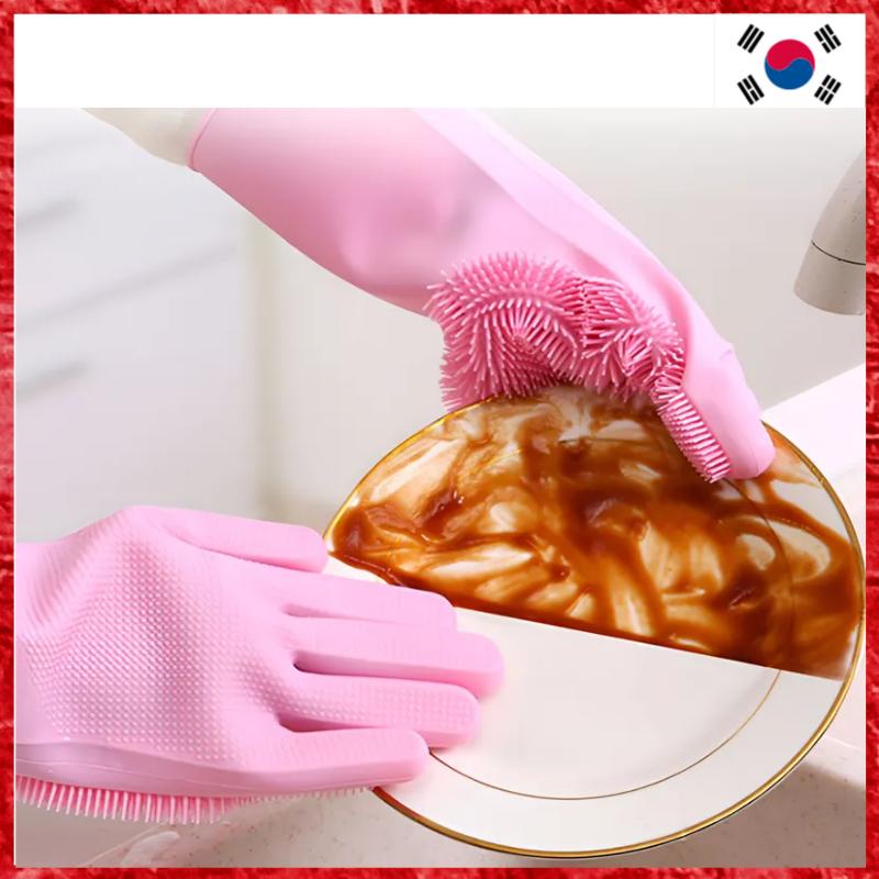 [YoungsVille] Silicone Scrubber Cleaning Gloves for Kitchen and Dishwashing