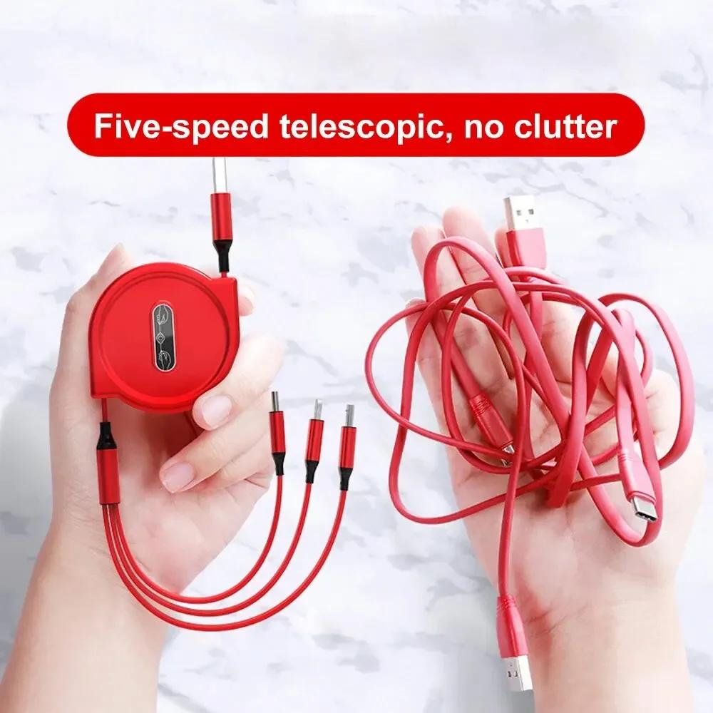 Retractable 3 in 1 Data Line Macaron Color for IPhone14 Xiaomi Macbook HUAWEI Large Round Shell Multifunction USB Charging Cable