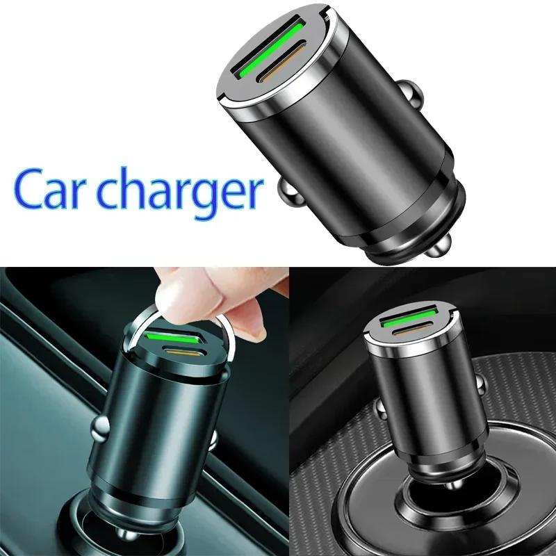 Mini 100W/200W Hidden Car USB Charger Super Charge Dual USB Port Cigarette Lighter Adapter 30W PD for IPhone IPad Android