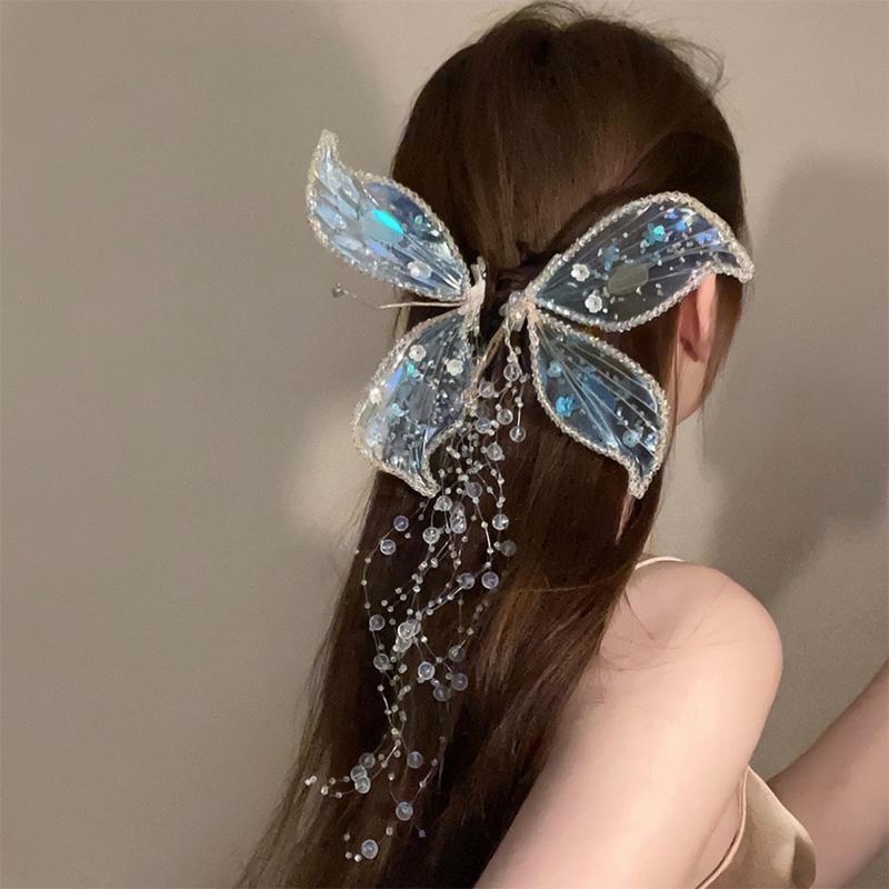 Kadın Kız Saç Tokası Yan Toka Kore Basit Takı Aksesuarları için Kelebek Boncuk Püsküllü Saç Tokaları