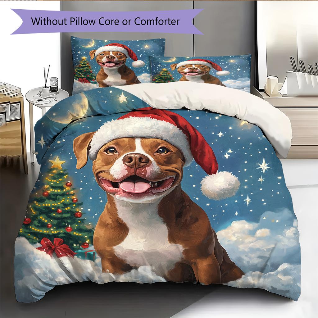 Christmas Pitbull Pattern Bedding Home Decoration Birthday Gift (1 * duvet cover + 2 * pillowcase, without core)