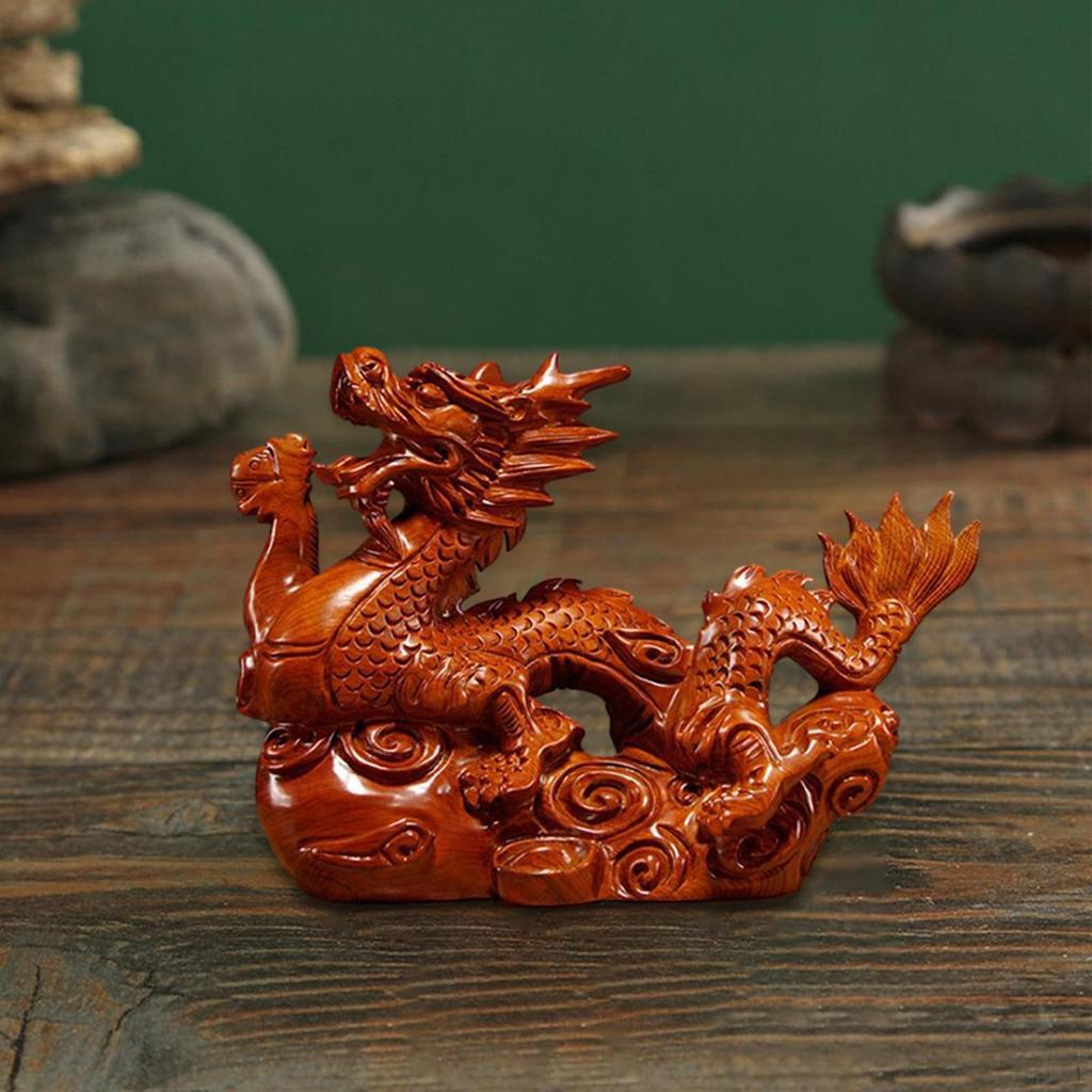 - 【East Asian Culture】Wood Carving Chinese Dragon Statue looks artistic, graceful, delicate and novel, old fashioned and bring you happiness, luck, success, guard your house and ward off ill fortune