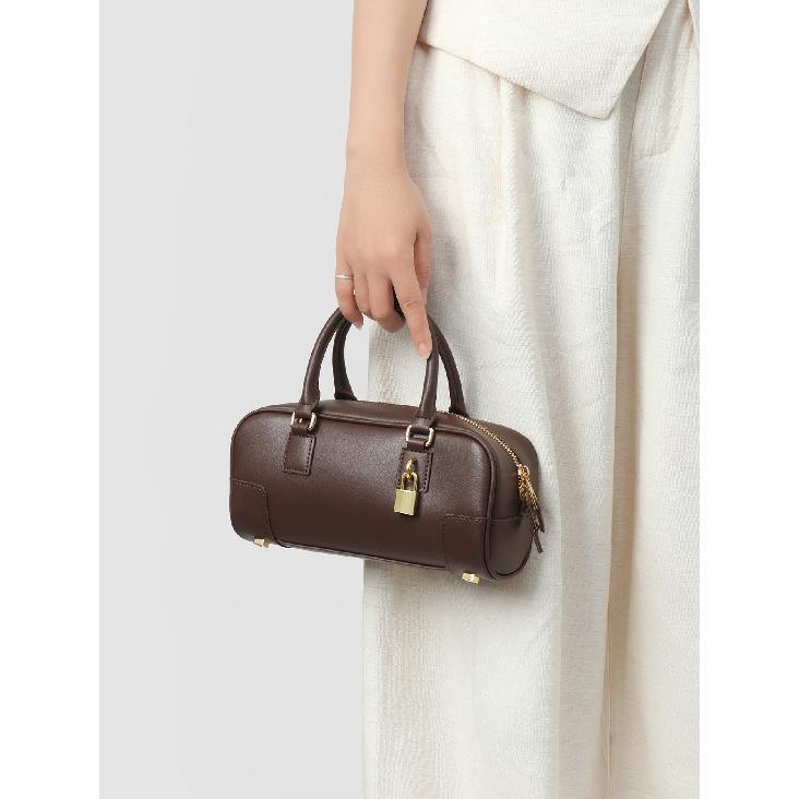 Niche Design Genuine Leather Vintage Underarm Bag New Bowling Bag Boston Underarm Bag Shoulder Bag Women's Bag