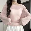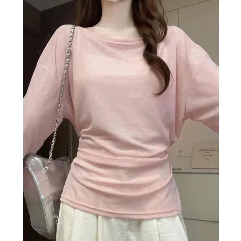 Women See Through Long Sleeve Oversize T Shirt Design Back Bandage Off Shoulder Top Female Long Tees Korean Lady