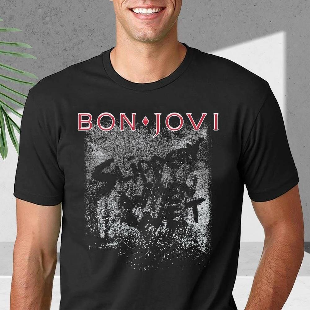 Bon Jovi Slippery Unisex Black Shirt S-3XL QR3748 Unisex T-Shirt