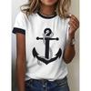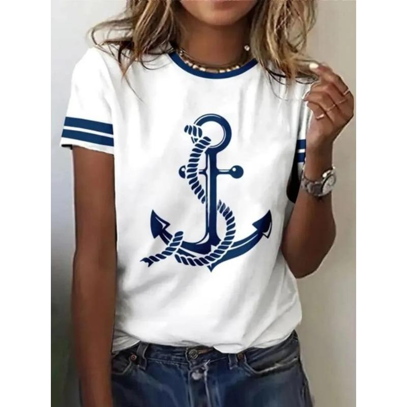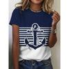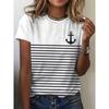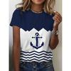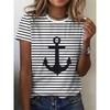 Women's 3D Printed T-Shirt Colorful Striped Boat Anchor Pattern Print Short Sleeve O-Neck Pullover Casual Top