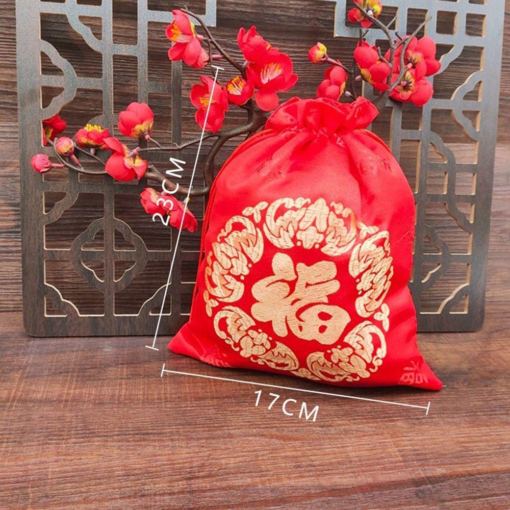 1Pcs Jewelry Drawstring Pouch Silk Fu Bag Brocade Gift Packaging Chinese Lucky Bags New Year Wedding Party Happy New Year
