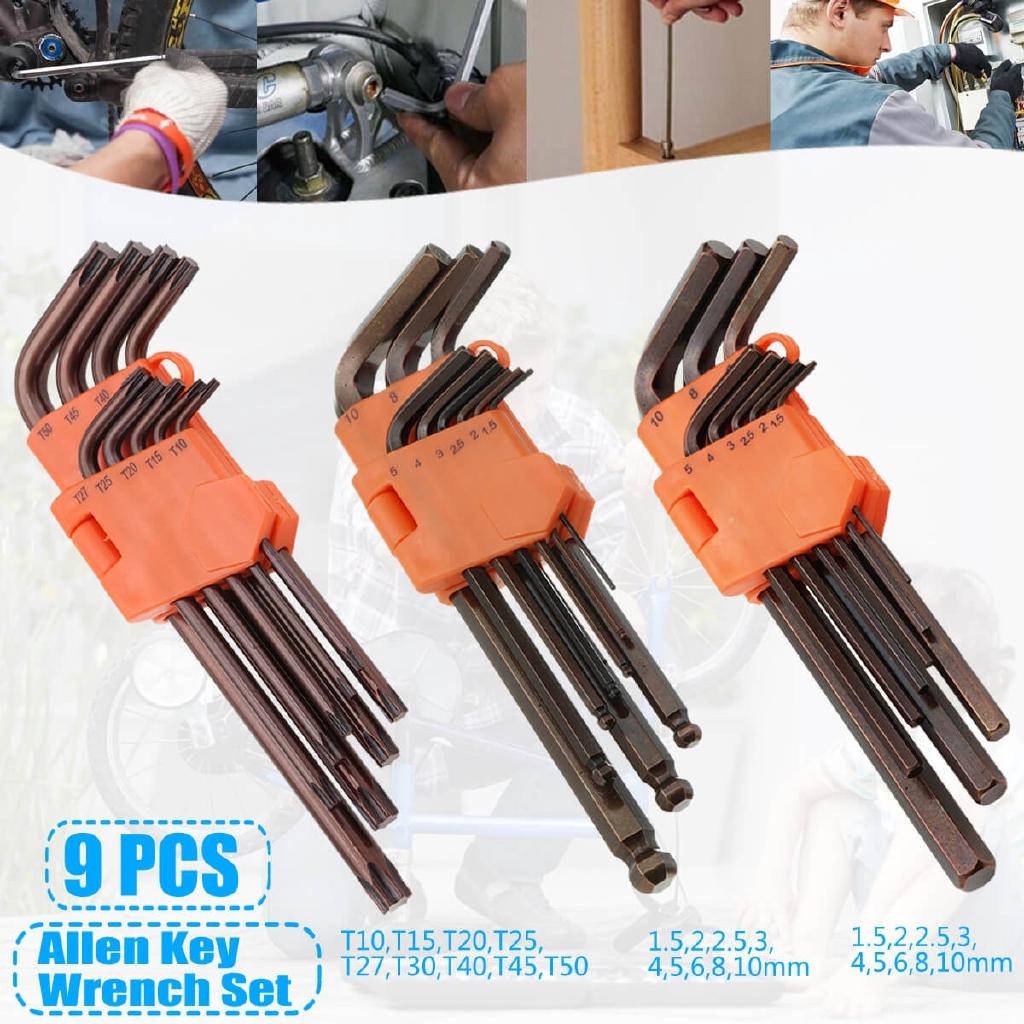 Use Hex Key Allen Tools Wrench Set Extra-long Arm AllenTorque Sae Memtric Torx Spanner Widely 9Pcs