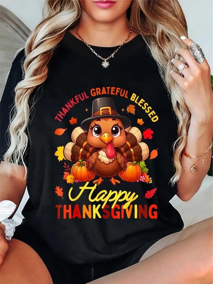 Thankful Grateful Blessed Happy Thanksgiving Turkey T-Shirt S-5XL Q8945 Unisex T-Shirt