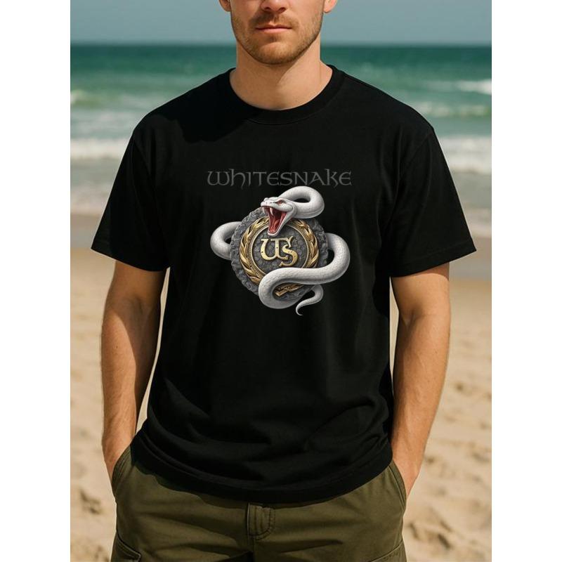 European sizes "Whitesnake White Snake" Band Logo Rock Retro Style Fashion Trend T-shirt, Comfortable and Breathable Casual Sports Top