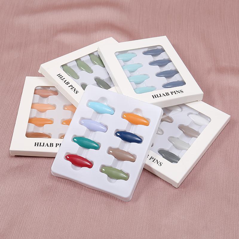 Fashion Muslim Scarf Hijab Pins Oval Plastic Brooches For Women Mixed Colors Clips Fixed Safely Pin Accessories 8PcsBox