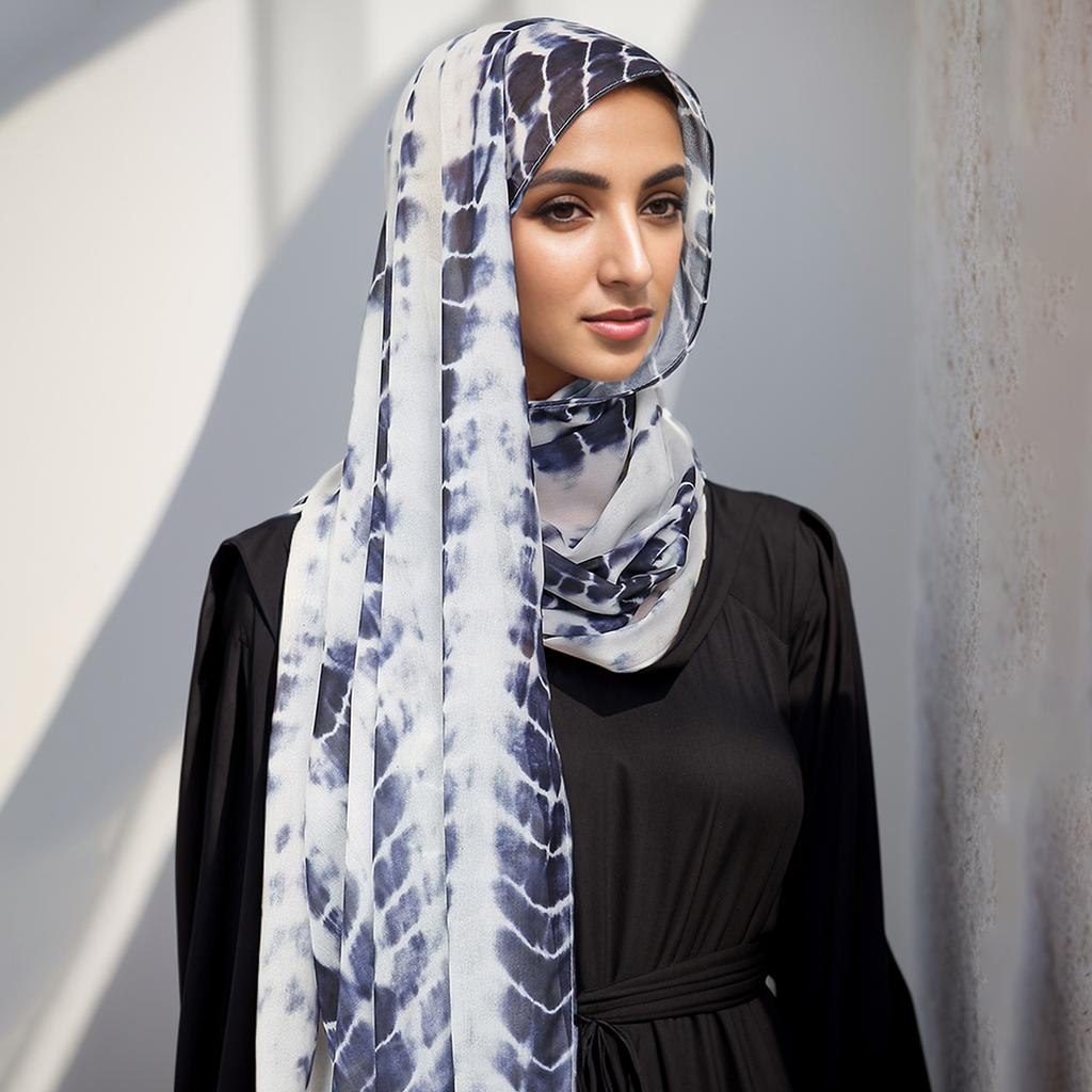 New Printed Chiffon Hijab Scarf For Women Muslim Headscarf Wraps Veils Islamic Turban Niqab Tie-Dyed Headband Muslim Hijab Shawl