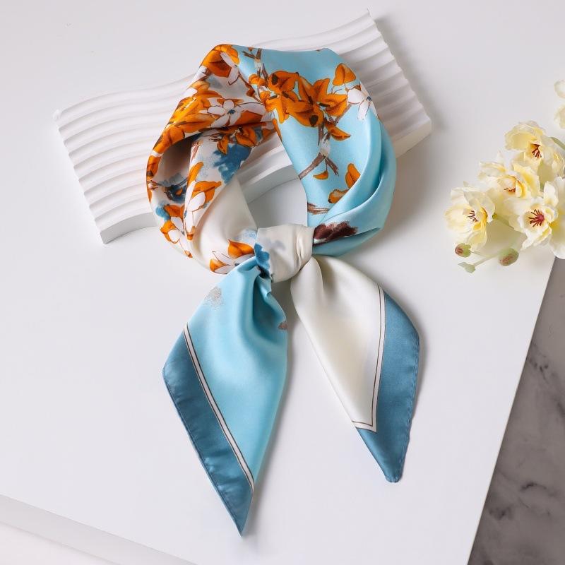 Luxury Printed Silk Scarf Women Simulated Silk Elegant Blue Versatile Headwear Bag Accessories Clothing Fashion Square Scarf