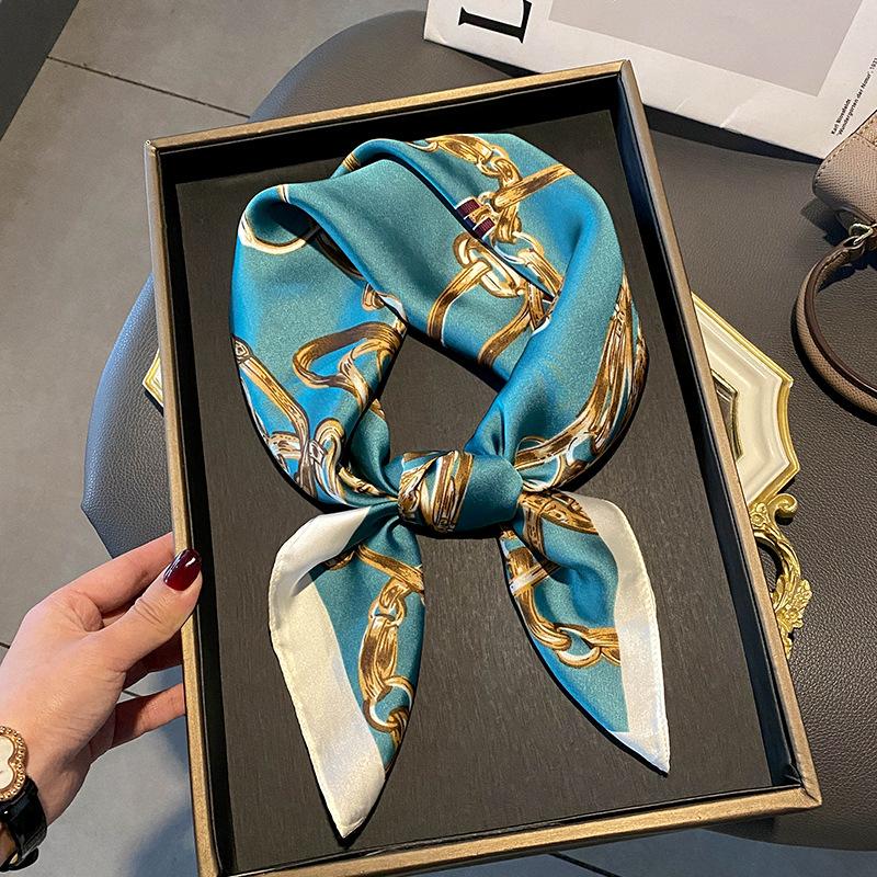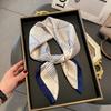 Luxury Design Silk Skinny Scarf Bag Handle Ribbon Ladies Little Cat Print Headband Small Hair Scarves Band Female Handkerchief