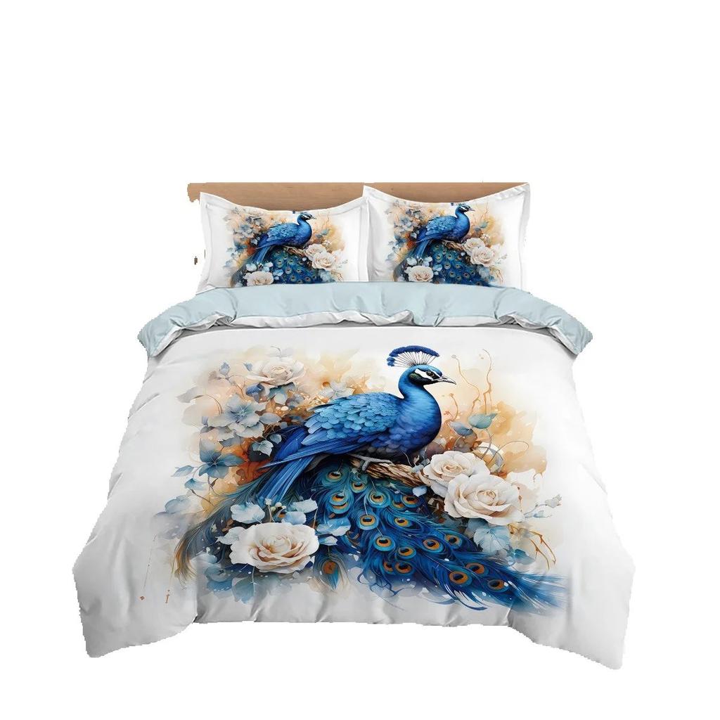 3D Peacock Bedding Set Peacock Bird Animal Duvet Cover Gorgeous Blue Feather Quilt Cover PillowcaseQueen Bedding Set