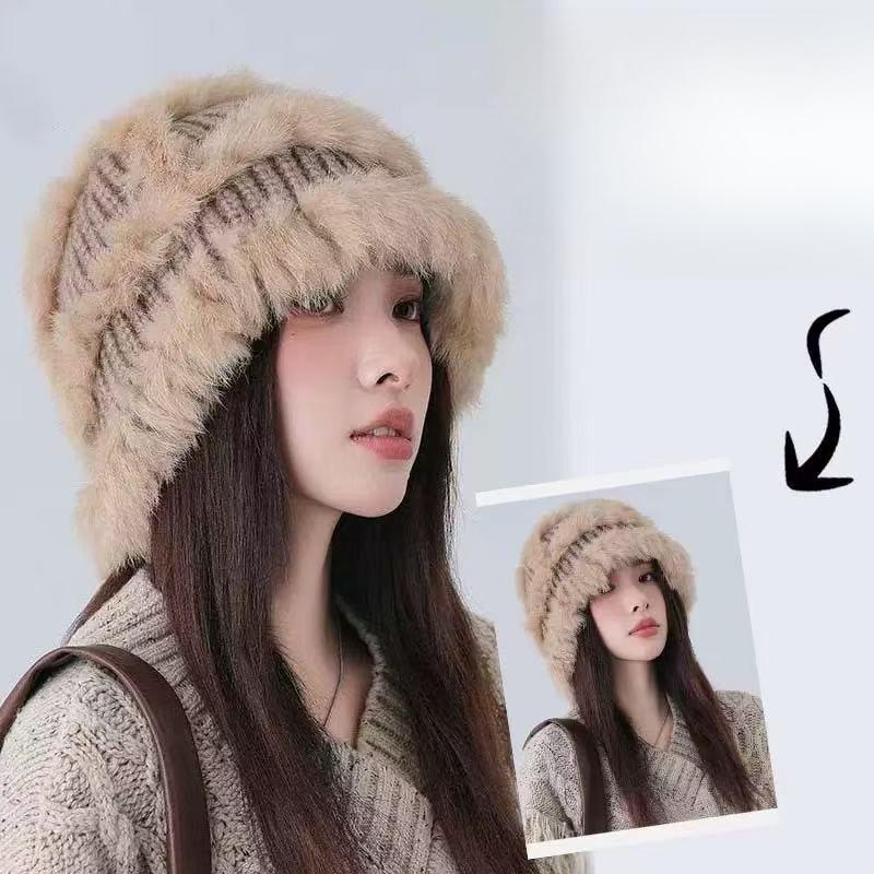 Plush Bag Head Showing Face Small Fur Bucket Hat Bag Face Knitted Hat Women'S Autumn And Winter Warm Wool Hat Cold