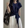 Yeni Düz Renkli Askılı Kısa Kollu Yuvarlak Yaka Birleştirilmiş Bol İnce Moda Üst