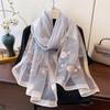 Elegant Long Embroidered Silk Feeling Scarf Women'S Fashion Spring New Style Shawl Wrap Outerwear Trendy Floral Pattern Stylish