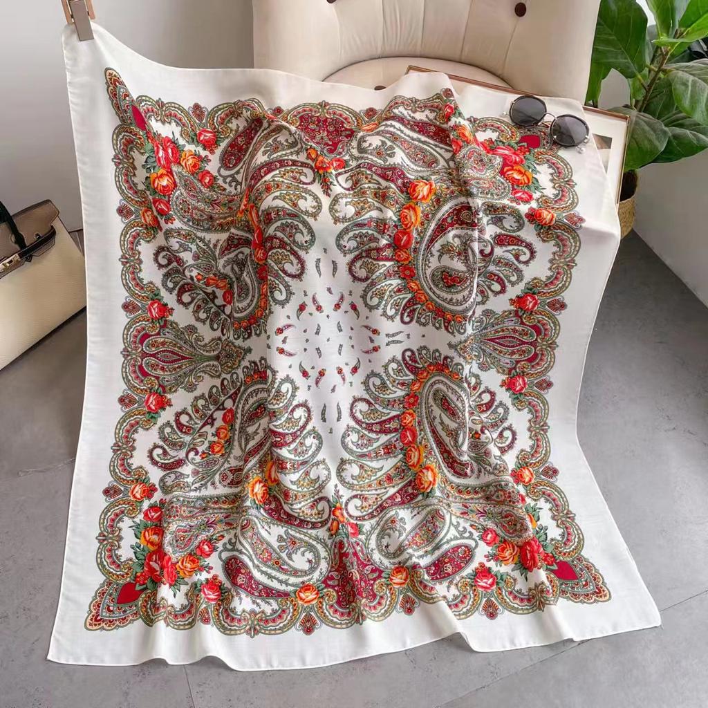 110*110Cm Russian Square Scarf Women Floral Cashew Print Bandana Shawl Babushka Head Scarves Female Ethnic Paisley Shawls