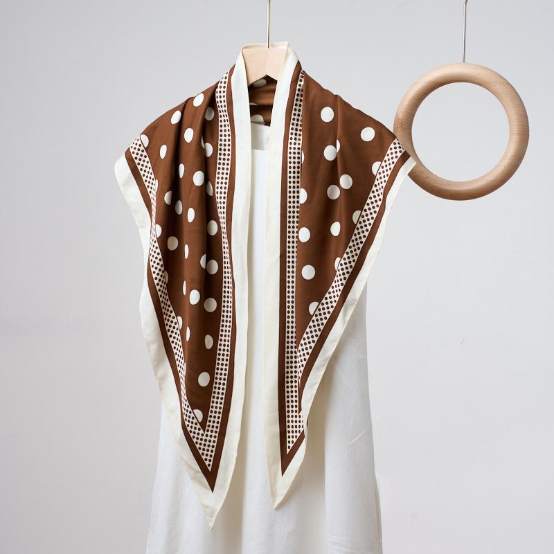1 New Simple Coffee-Colored Polka Dot Printed Triangle Scarf Fashionable Versatile Belt Diagonal Scarf Women'S High-End Silk