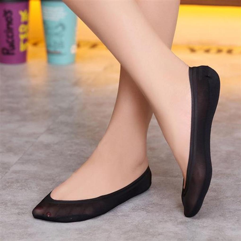 Non-slip flat shoe slippers (see-through black)/stocking slippers