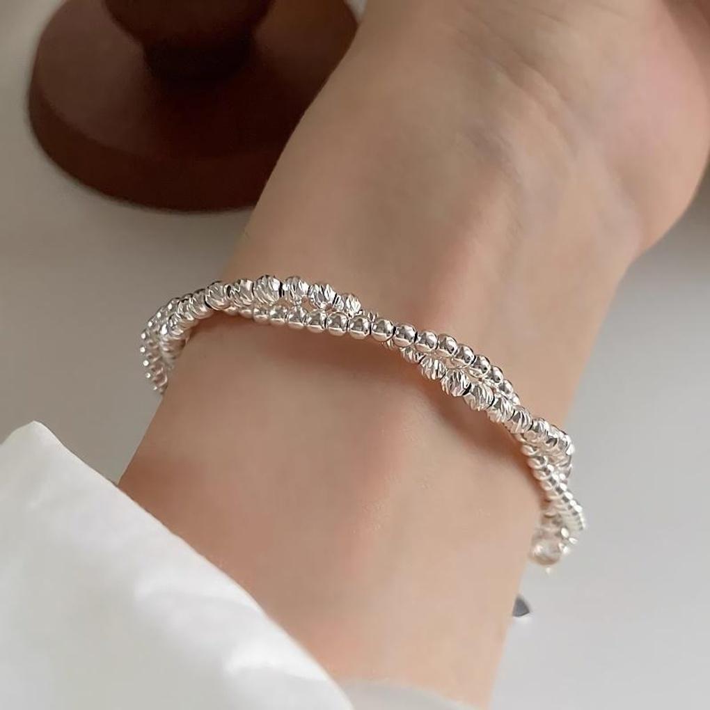 Women's Silver 925 Ball Bead Twist Layered Bracelet