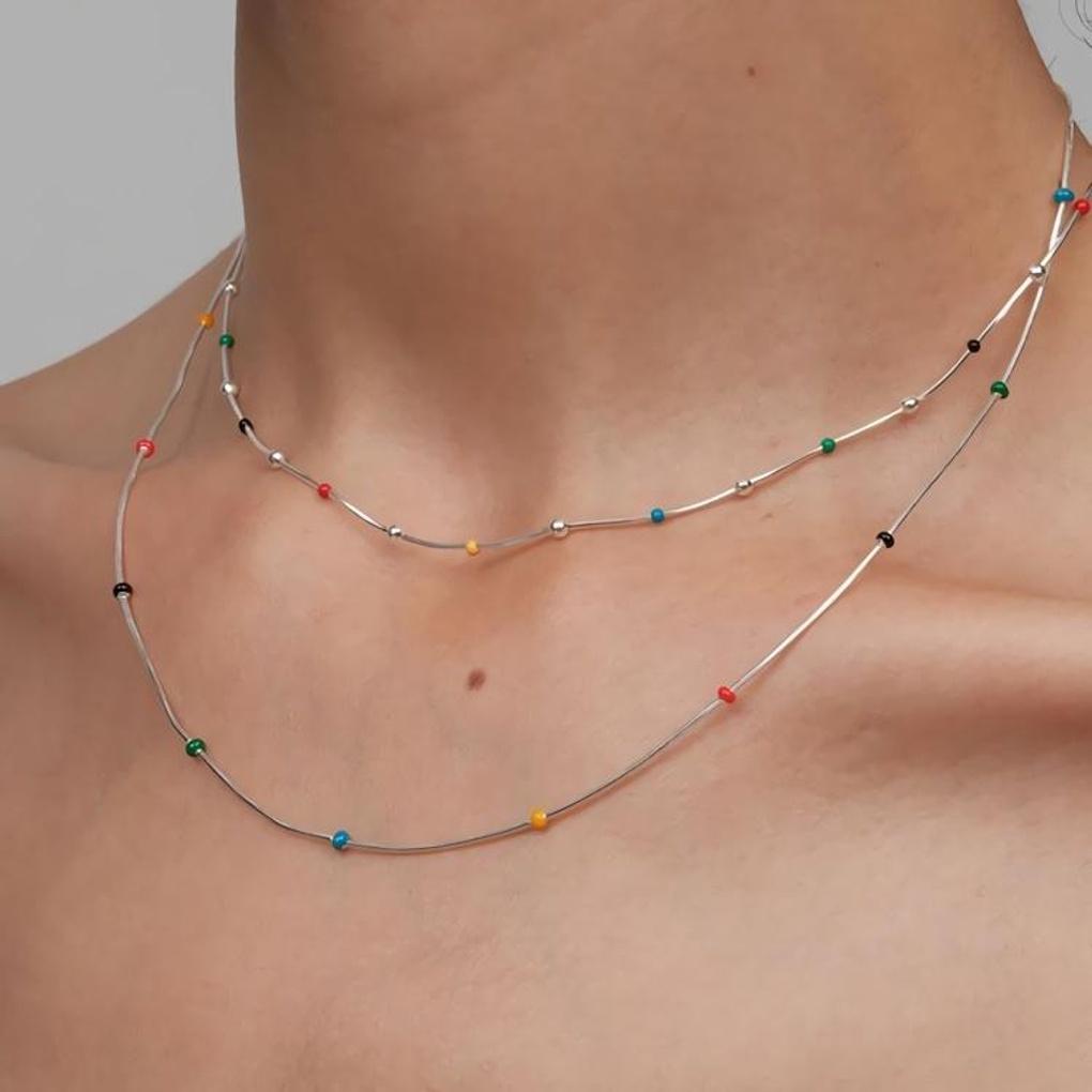 Women's Rainbow Enamel Bead Chain Layered Necklace