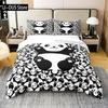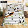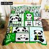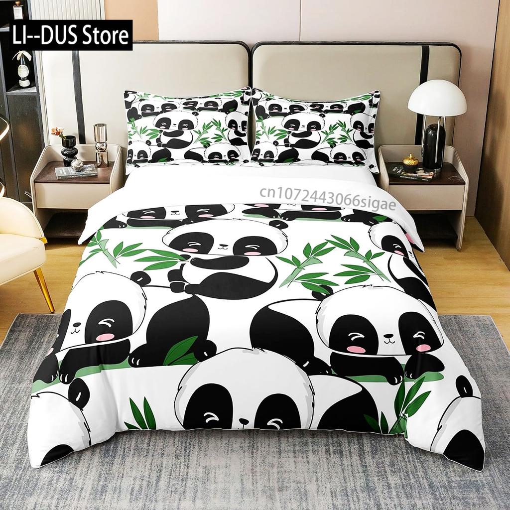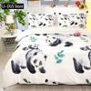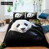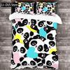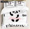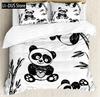Kids Black Printed Cartoon Panda Beddings Cute Animal Pattern Teens Bedlinings 1 Duvet Cover Sets and 2 Pillowcases Full Size