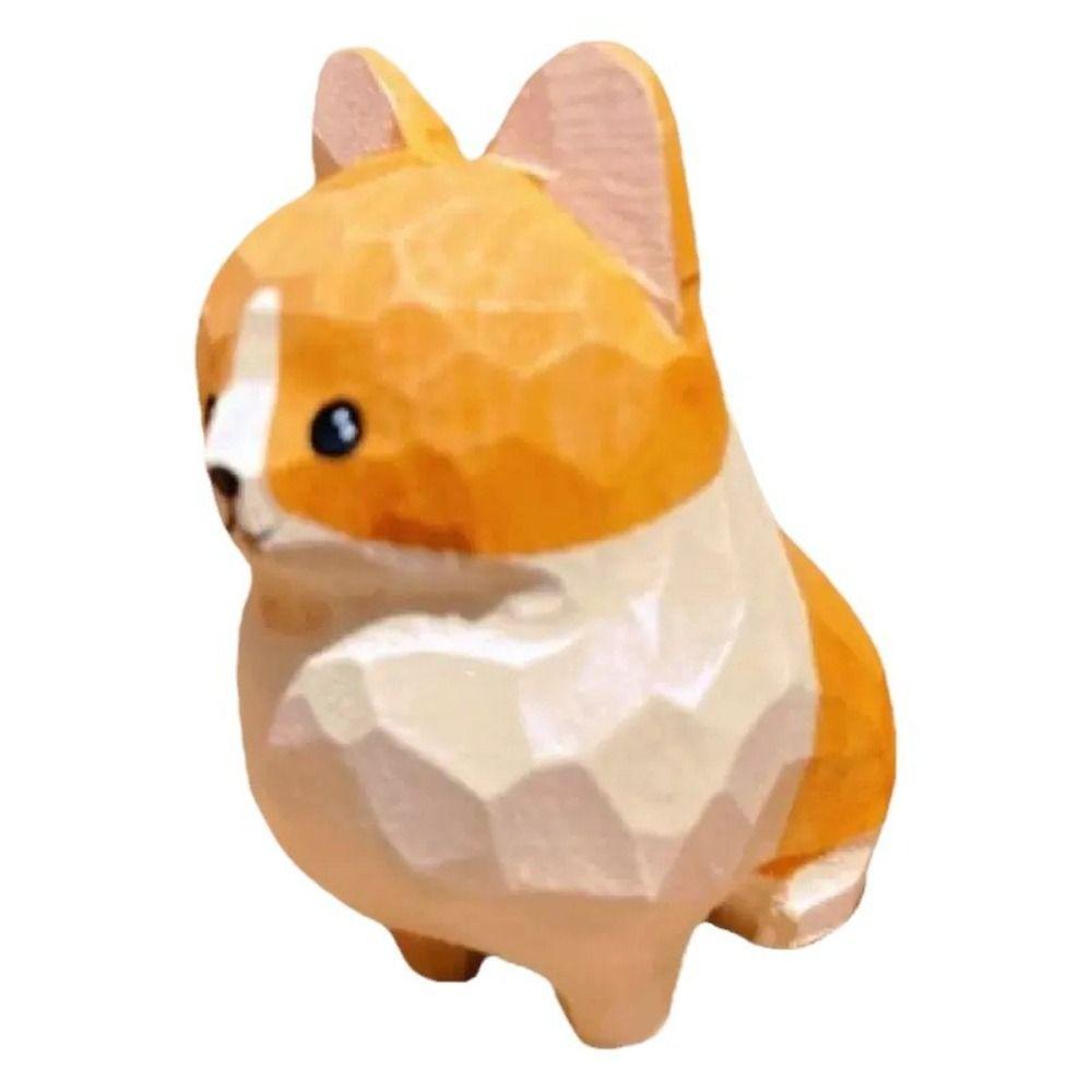 Home Desktop Decorations Handmade Wood Carving Dog Ornament Wooden Cute Handicrafts Puppy Sculpture Decoration Crafts