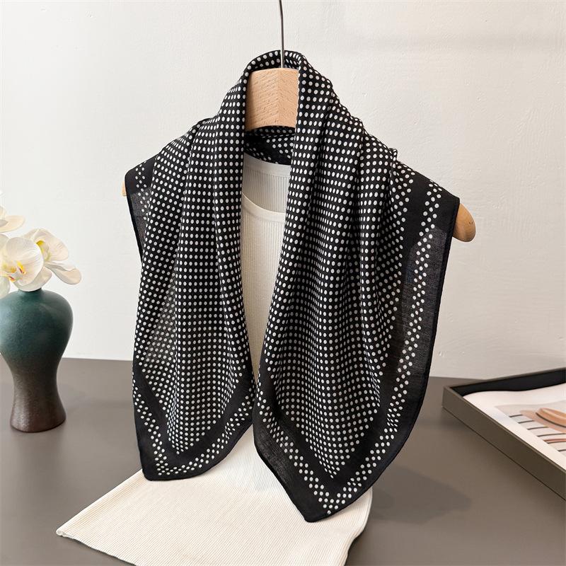 Polka Dot Print Hairbands Square Scarf Women Cotton Linen Feeling Bandana Neck Kerchief Head Bands Foulard Female Scarfs