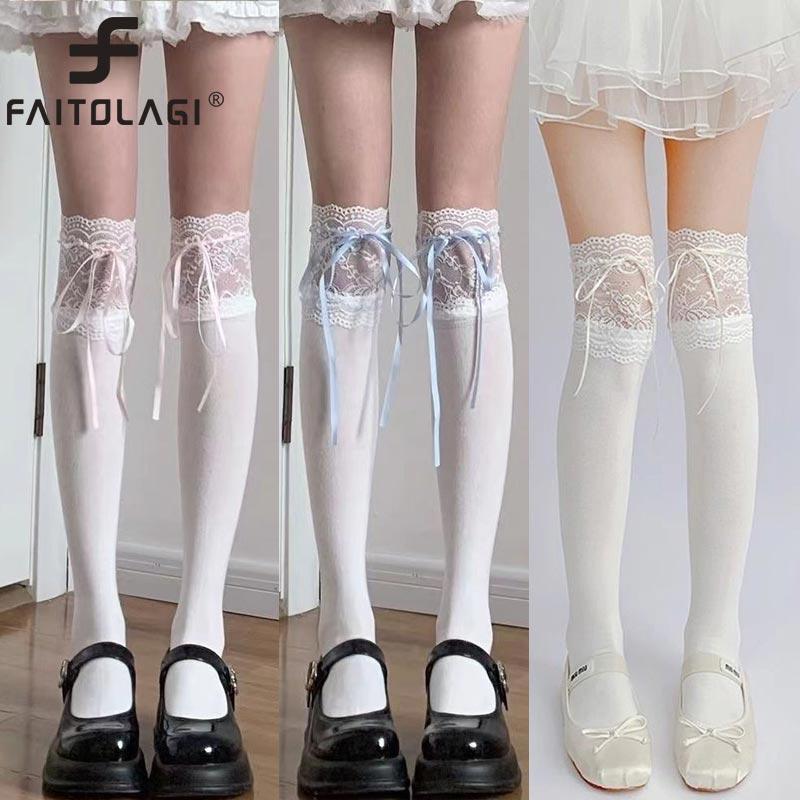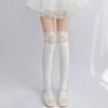 Girls Lolita Velvet Stockings White Knee Length Stockings Lace Splicing High Tube Sock Ribbon Bowknot Long Socks Women Footwear