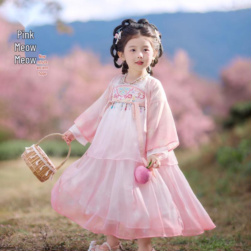 Girls' Light Pink Embroidered Hanfu Princess Dress