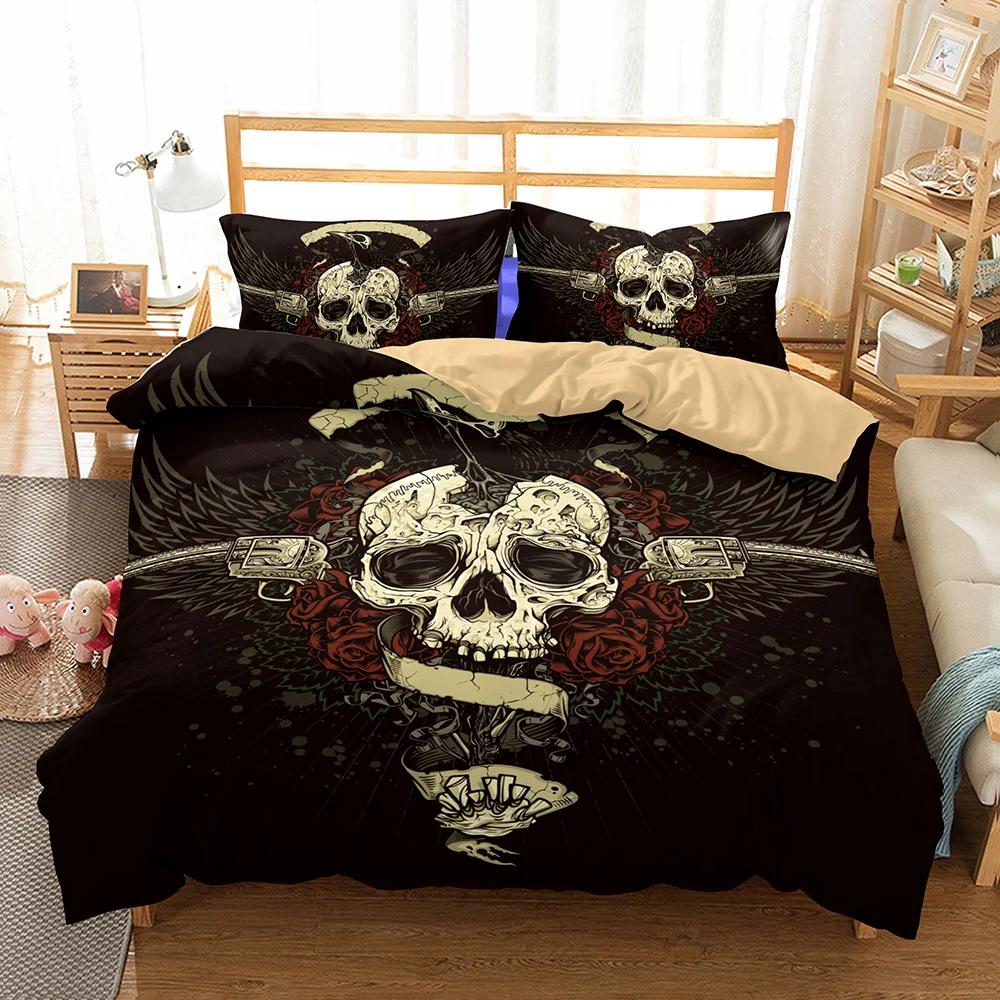 100% Polyester Bedclothes Black Duvet Cover Bedding Sugar Skull Bedroom Comforter Set King Size Bedding Bed Set Cover Double Kid