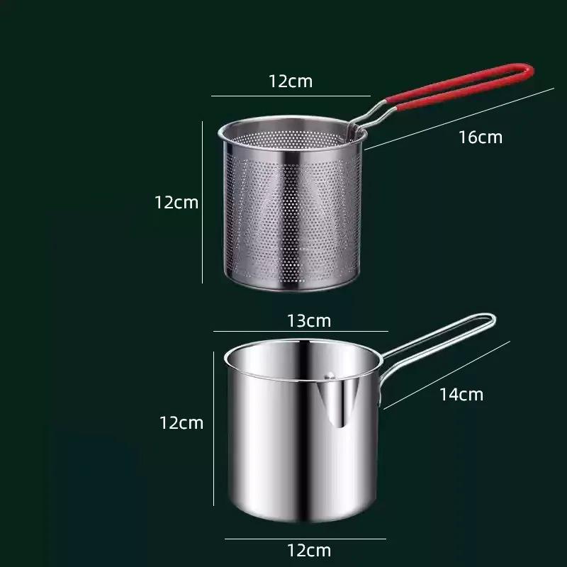 stainless steel fryer with French fries and chicken wings, household small oil pot with filter screen, Tianfu Luo pot